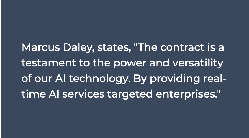 PreviousMarcus Daley, states, "The contract is a testament to the power and versatility of our AI technology. By providing real-time AI services targeted enterprises."Next